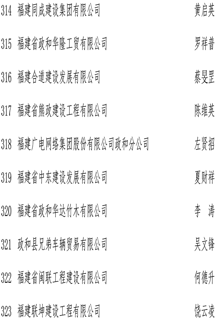 2020-2021年度南平市守合同重信用企業(yè)名單